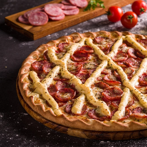 Combo: 1 Pizza gigante 12 fatias (2 sabores) + 1 Pizza P doce 4 fatias + 1 Refri 1,5L