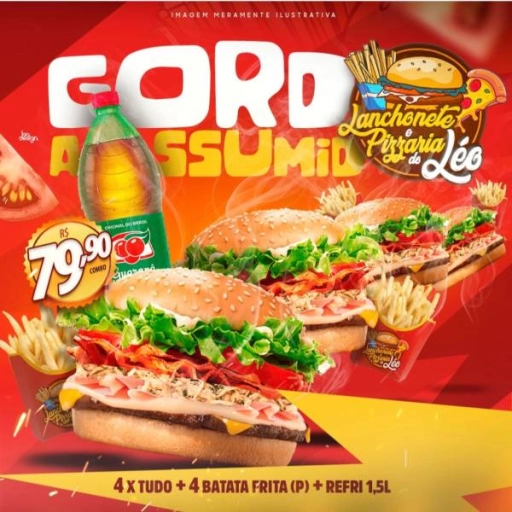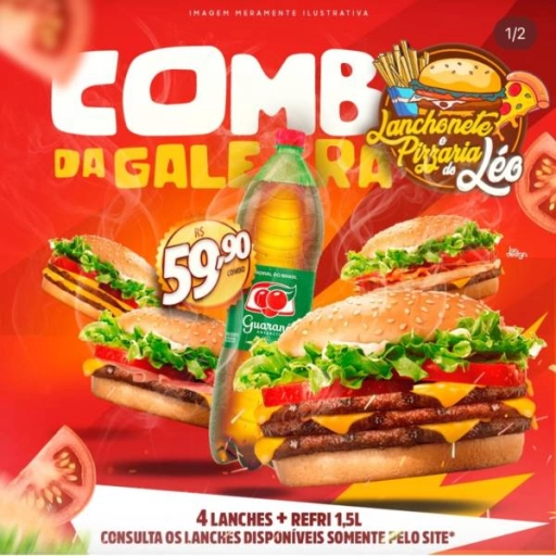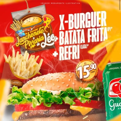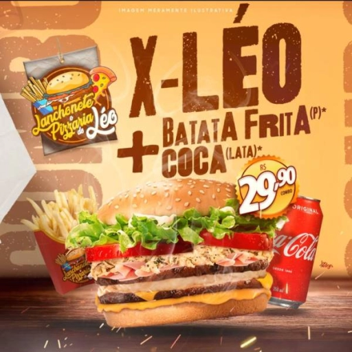 1 X-Léo (Pão, 2 carnes, ovo, queijo, presunto, bacon, frango, cheddar e alface) + Batata Frita P + Coca Cola Lata