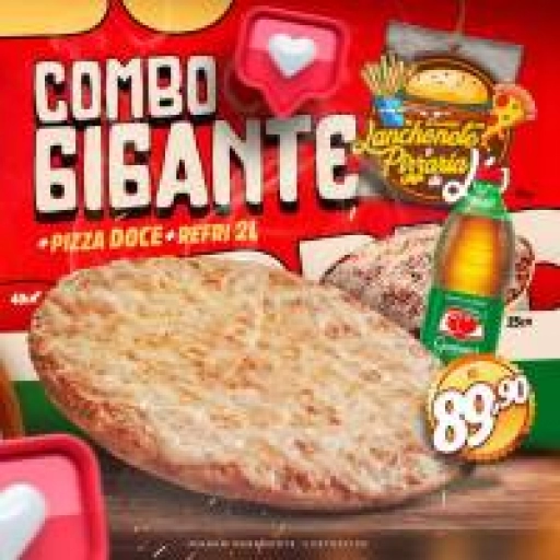 Combo: 1 Pizza gigante 12 fatias (2 sabores) + 1 Pizza P doce 4 fatias + 1 Refri 1,5L