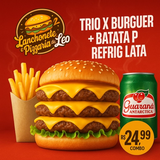 1 Triplo X Burguer Bacon + 1 Batata P + 1 Guaraná Lata